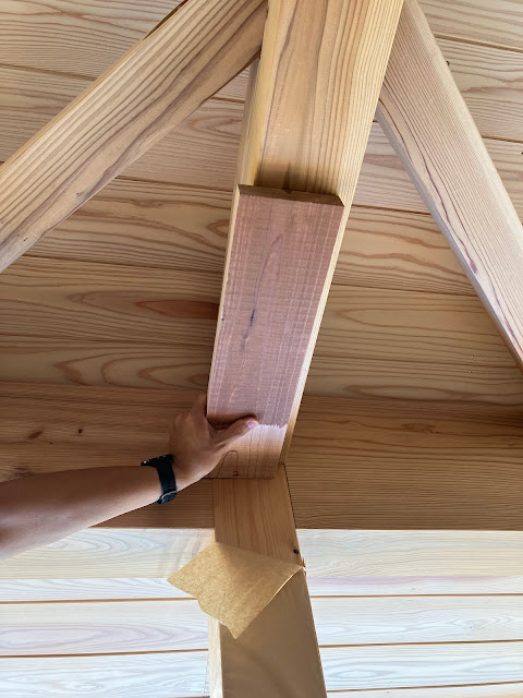 工務店の方が帰られた後、僕らは再び屋内や軒天の塗装色について、サンプル材をあてがったりしてイメージを膨らませながらああでもこうでもないと試行錯誤を続けます。ただ、時間だけが過ぎ去っていき、なかなか決まりません。